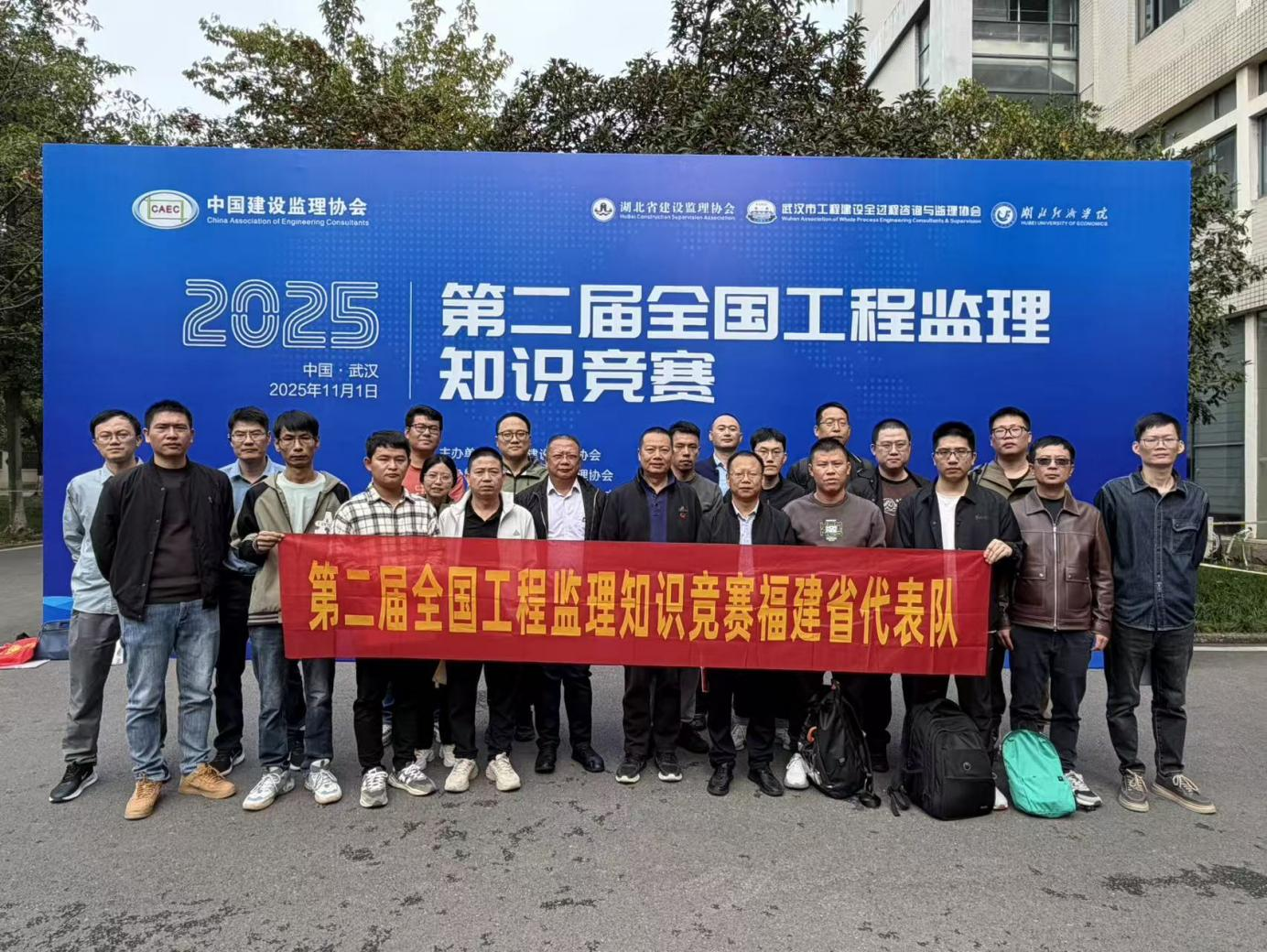 2025年11月1日,由中国建设监理协会主办,湖北省建设监理协会、武汉市工程建设全过程咨询与监理协会协办,湖北经济学院承办的“第二届全国工程监理知识竞赛”在武汉湖北经济学院圆满落幕。作为工程监理领域全国性标杆赛事,本次竞赛吸引了全国29个省份近750名行业精英同台竞技,福建省代表队凭借扎实的专业素养与高效的团队协作,斩获团体二等奖及多项个人、单位奖项,充分展现了福建工程监理行业的过硬实力。